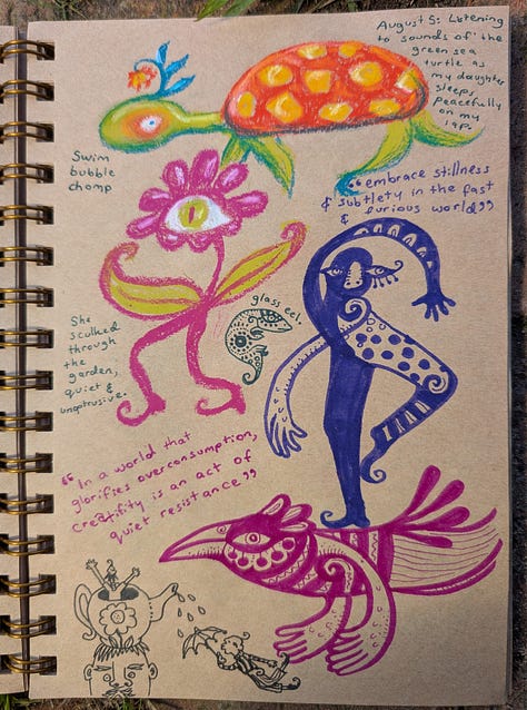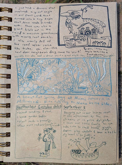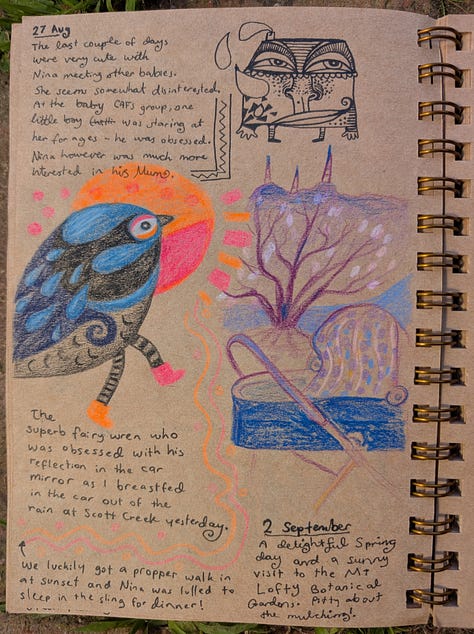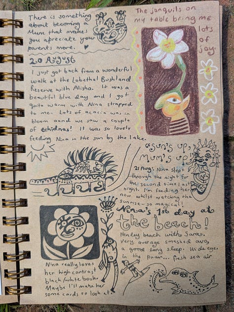 Greetings lovely people, I hope you had a wonderfully creative month. I’ve been enjoying the last cold days of winter cuddling on the couch with my daughter. Nina has been wanting to feed almost non-stop recently and has had a big growth spurt. I’ve often got myself set up with all my art supplies next to me and have been particularly productive with my journaling and zine making. Check out my ‘What Horses Eat’ zine in my most recent newsletter or on my website that I made exclusively whilst breastfeeding.