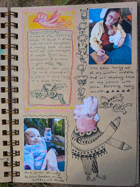 I’ve never been quite so into journaling as I am now. I think that it has something to do with savouring these precious times with my newborn. The journal is also acting like a sketchbook and I’m enjoying playing around with different ideas in it. I recently posted a post sharing pages from my 2022 journal which you can see here.