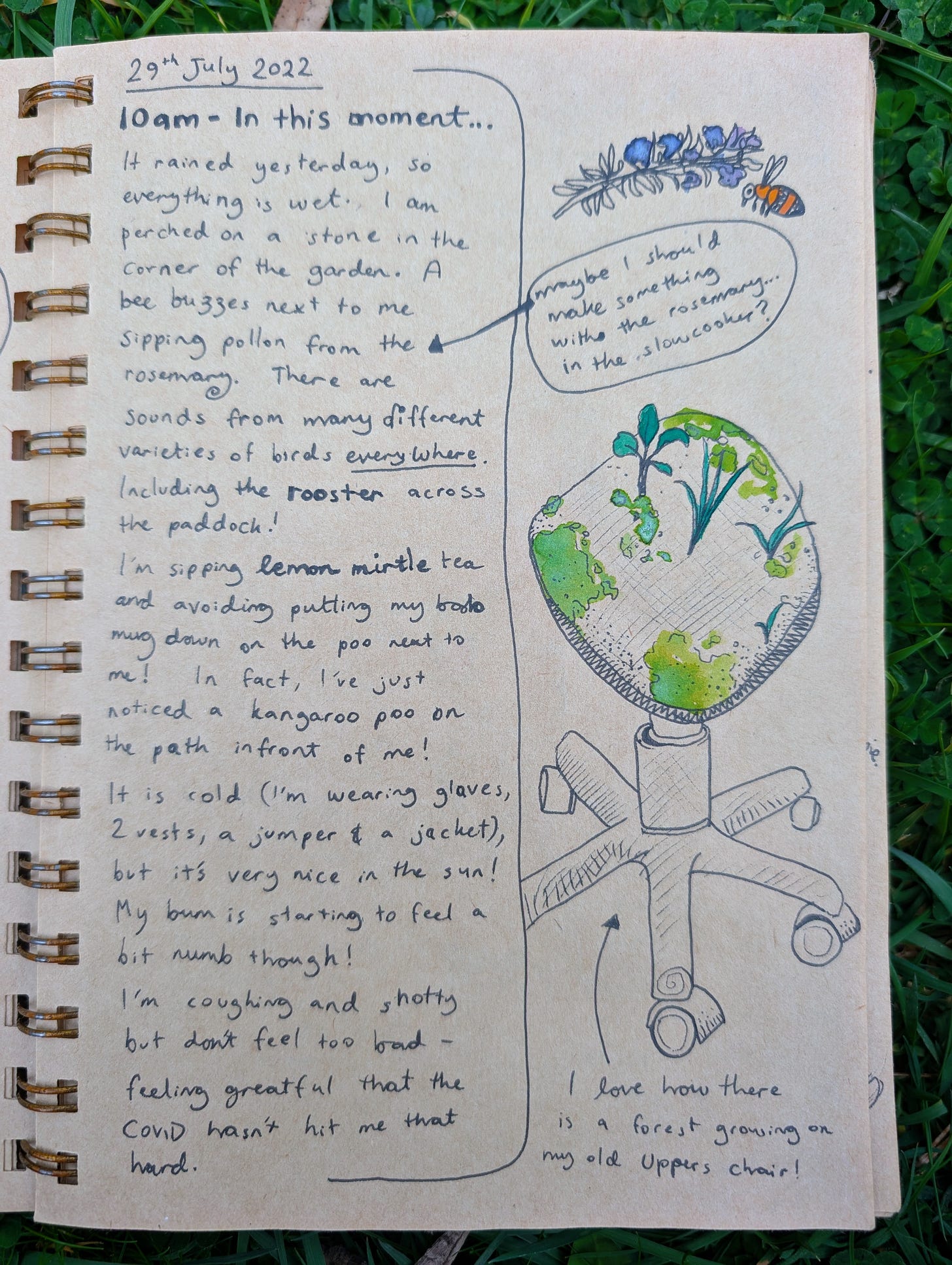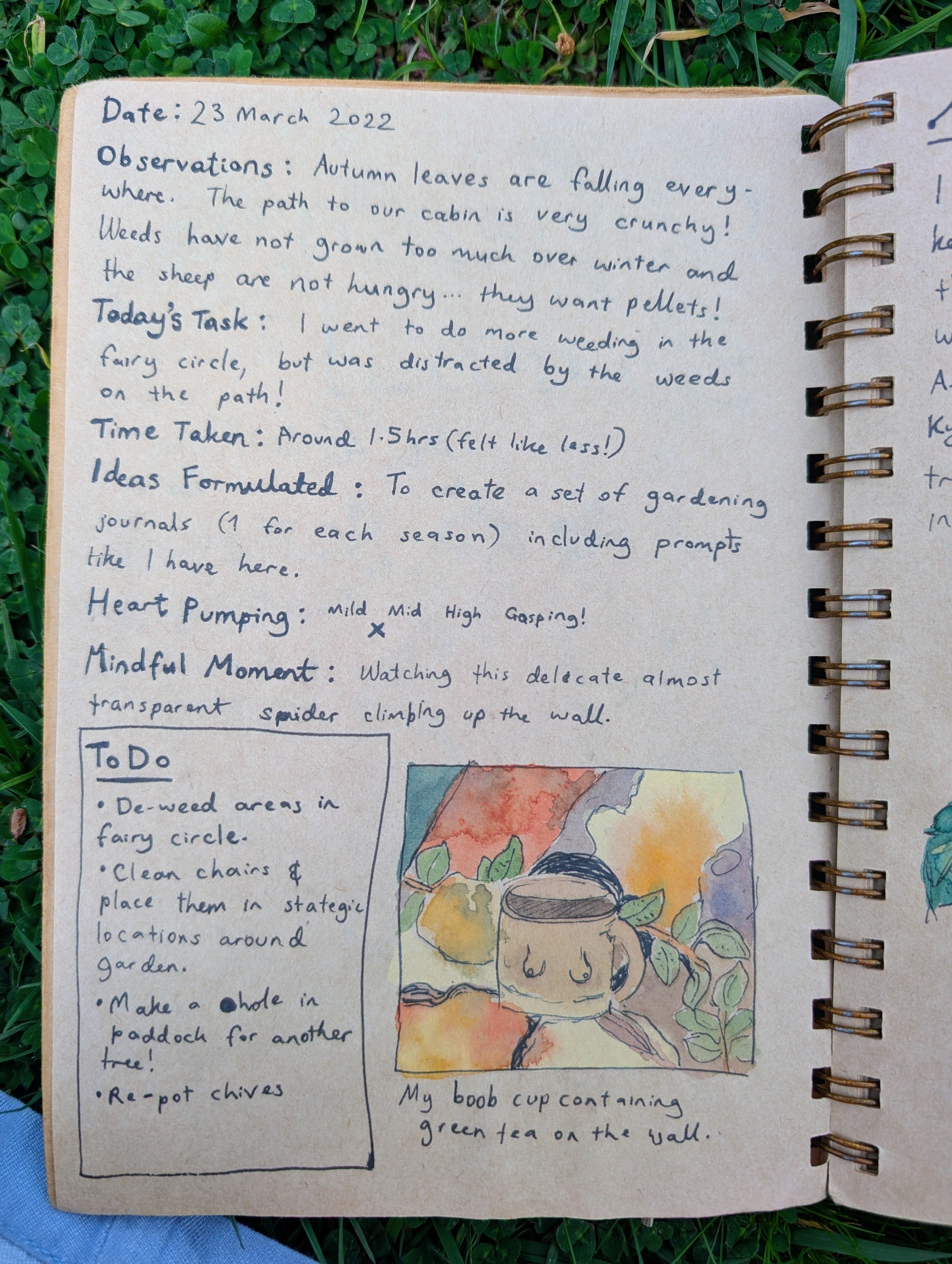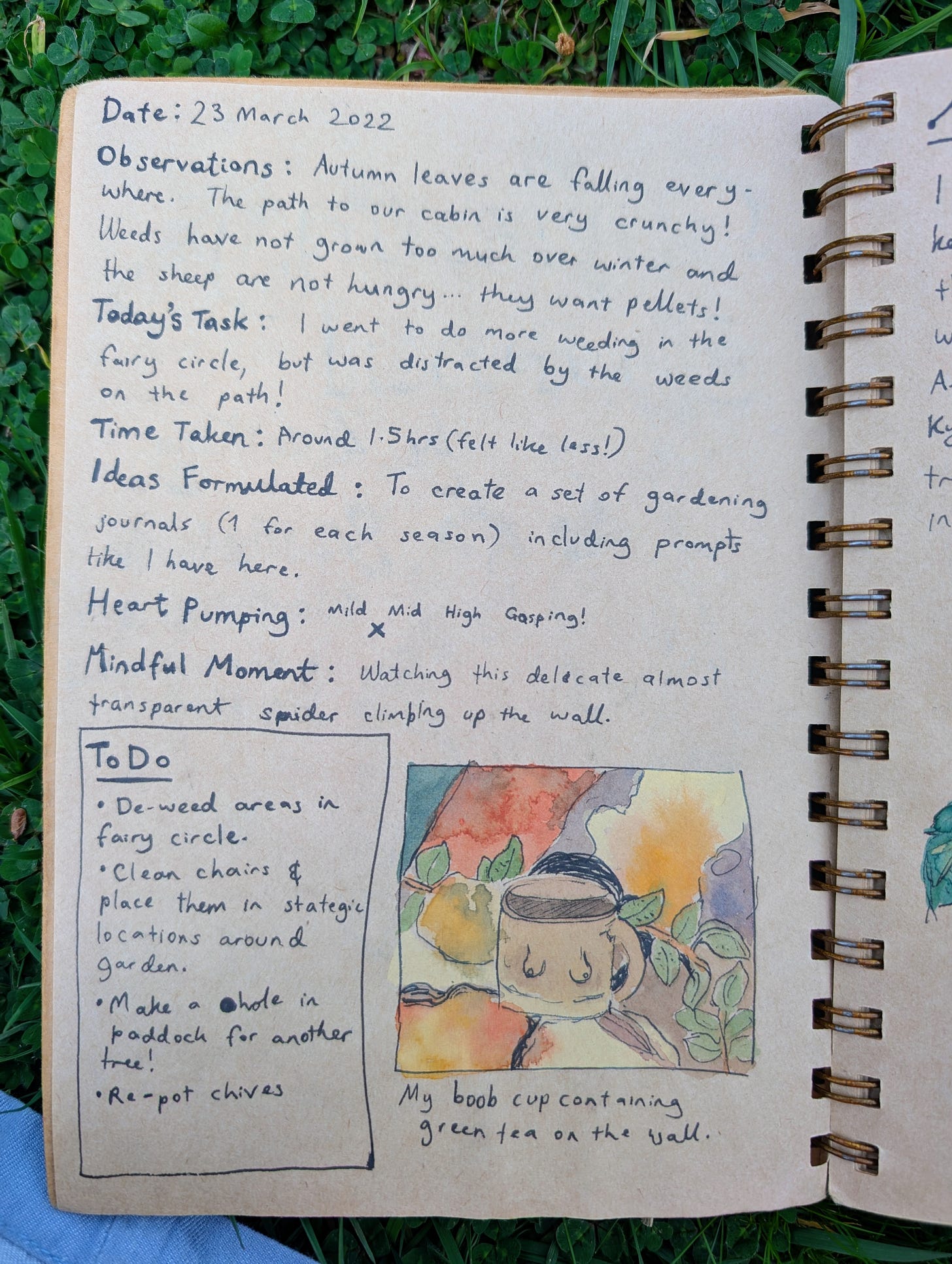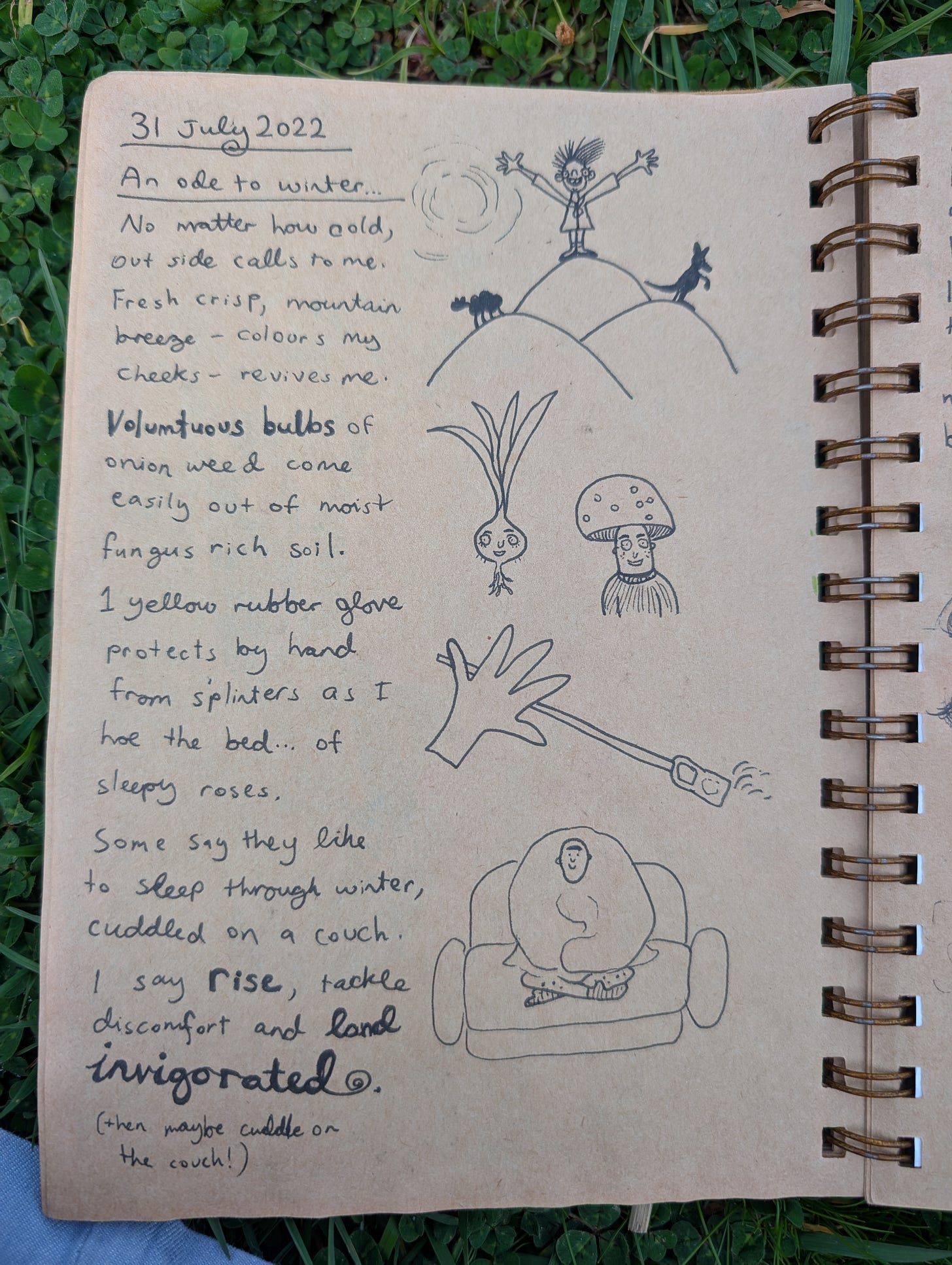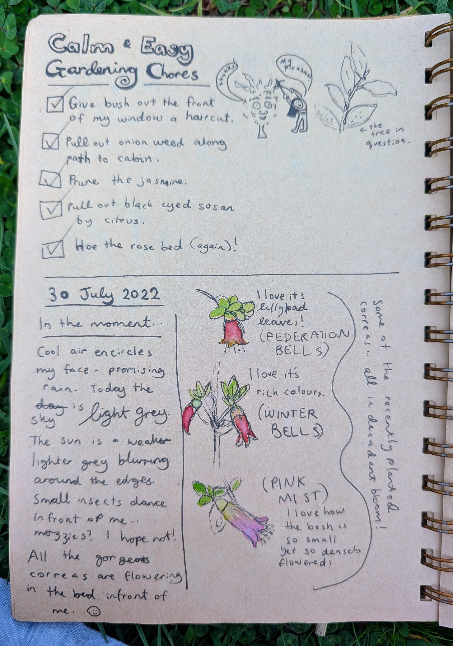 In March of 2022, I decided to start a gardening journal which soon evolved into a nature journal and then more of an everything journal. Since then, I’ve kept a journal fairly religiously (especially so this year - see my Dose of Whimsy posts for monthly journal recaps). Being an illustrator, these journals have been a wonderful place to play and explore new ideas. They’ve also been a safe haven and a way to calm my nervous system when life gets too hectic. Something that I find always grounds me is to step outside, take some deep breaths and write down what I see/hear/smell, bonus points if I take some time to draw something too. Why not try it yourself? Even just 5 minutes outside noticing the world around you can do wonders for your stress levels.