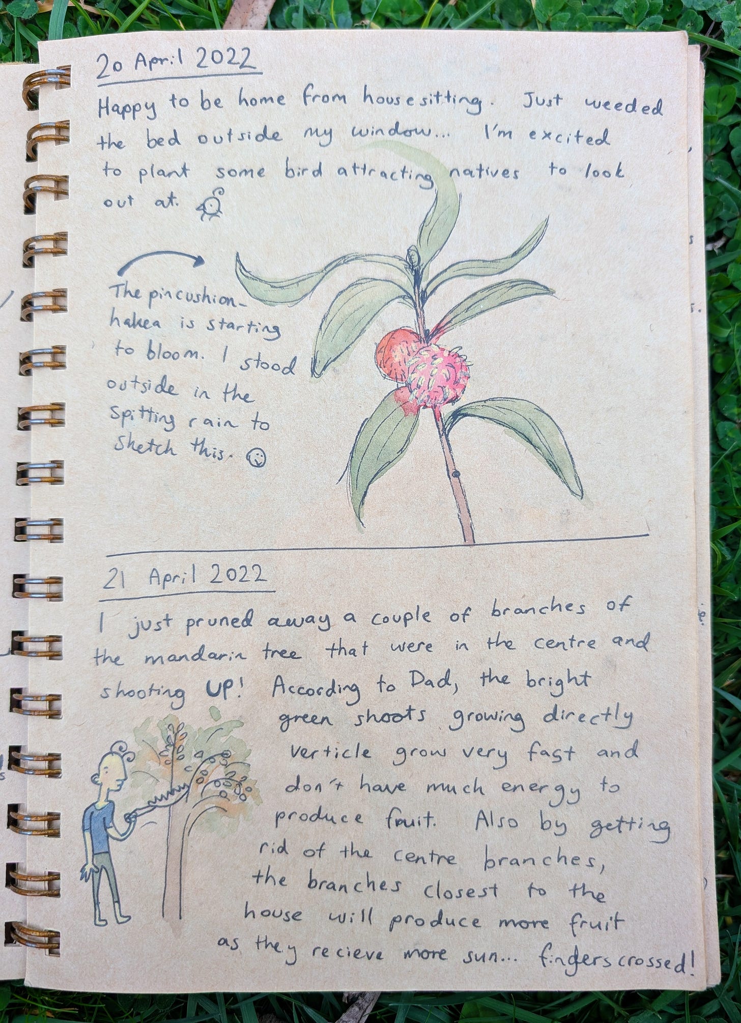 Thoughts on nature journaling and some pages from my 2022 nature journal