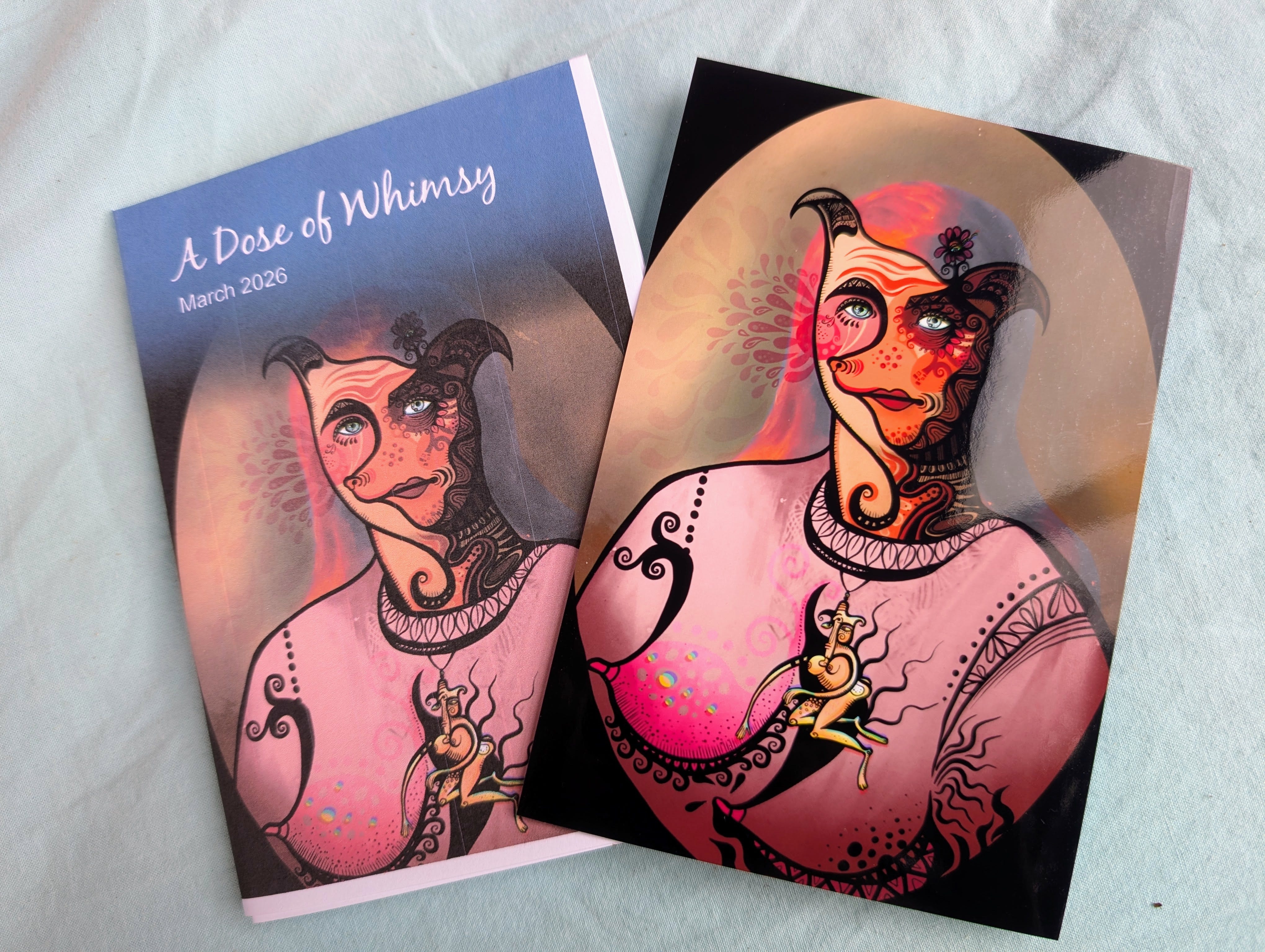 I’m really loving turning my ‘Dose of Whimsy’ blog post into a little zine every month and sending them out via snail mail. So much so that I’d love to gift copies of February, March and April zines and mini-prints to one of you lovely people. Just leave a comment here as to what you miss most about snail mail and I’ll choose someone to send them to.